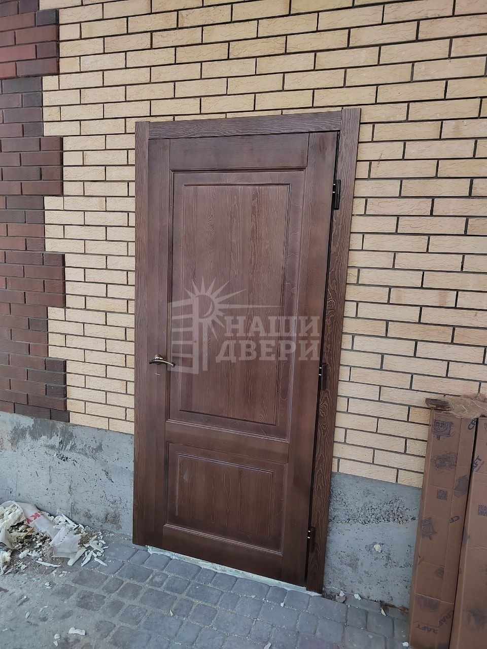 Утепленная дверь с коробкой по глубине проема из массива